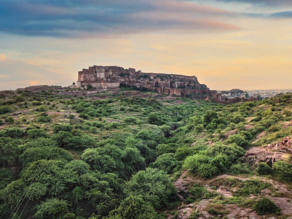 Every step takes you back thousands of years in time as the golden light spills over ancient volcanic rocks formed by lava eruptions 75,000 years ago. This immersive experience blends nature and history—spot native birds, learn about the resilient desert vegetation, and discover why this unique park was created to restore the natural ecology around Mehrangarh Fort. From the hilltops, we take in panoramic, 360-degree views of the Jodhpur City below, with breath taking sights of Jaswant Thada and the majestic fort rising from the rocks. This walk is not just a trek—it’s a journey through deep time, desert beauty, and living heritage.
